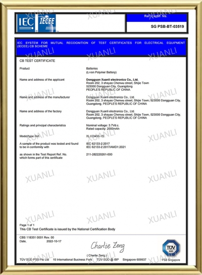 XL 3.7V 2600mAh --IEC